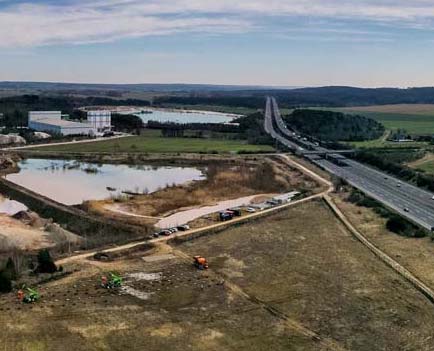 Am Standort Uhry erzeugen wir Strom direkt dort, wo er gebraucht wird. In diesem Fall geht es um eine großflächige Photovoltaikanlage auf dem Gelände eines Kieswerks direkt an der A2. Hier wird emissionsarmer Strom für den energieintensiven Abbau mineralischer Rohstoffe geliefert. Kurzstreckentransporte mit Elektro-Lkw werden geprüft und die passende Ladeinfrastruktur ist in Planung. Ziel ist es, eine Lieferkette zu ermöglichen, die einen deutlich reduzierten CO₂-Fußabdruck aufweist.